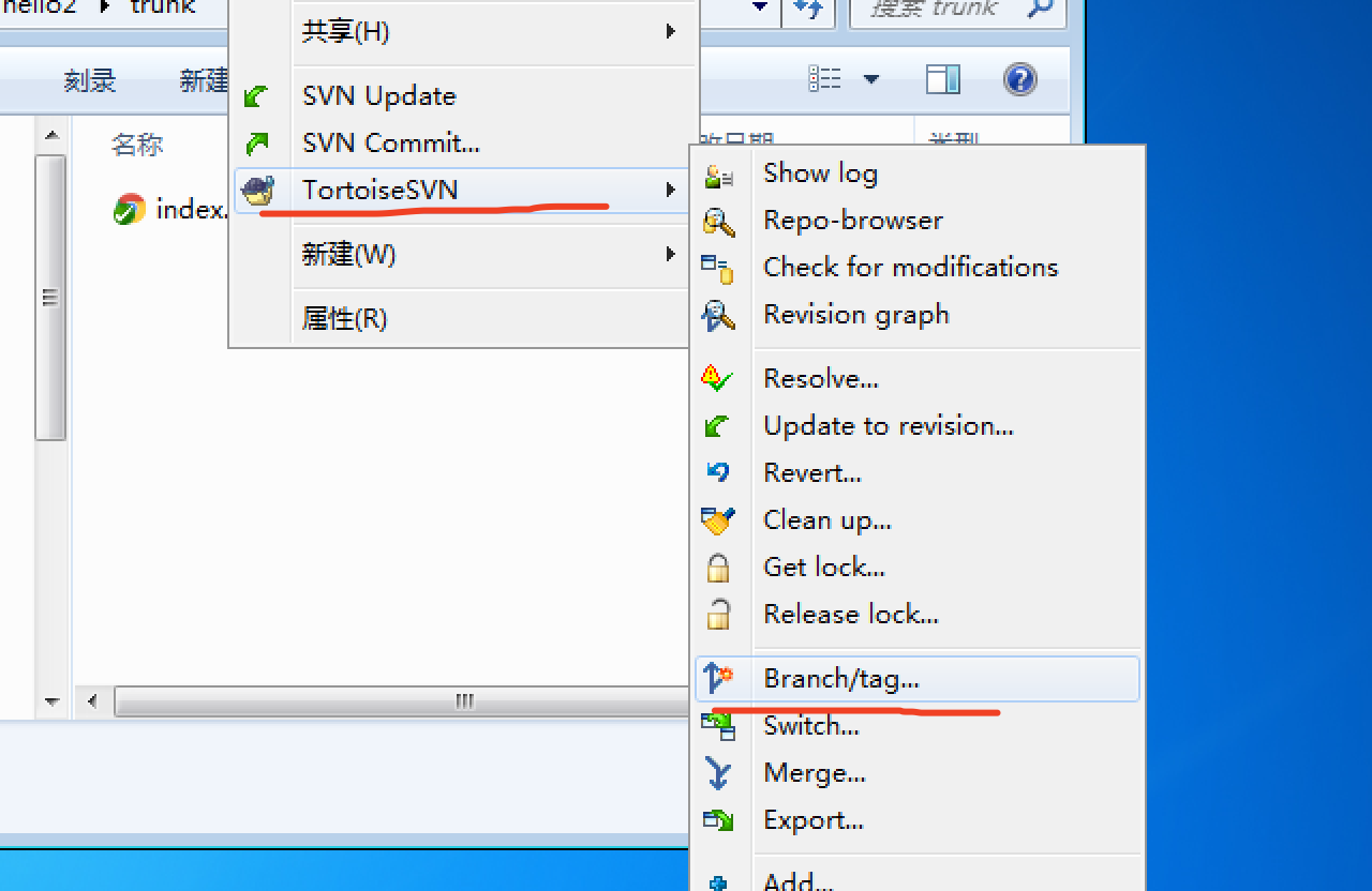 创建分支其实就是把主干下的文件copy到新的分支下.